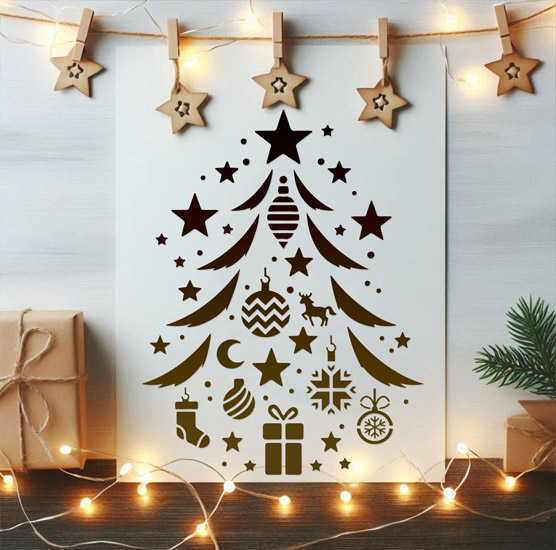 Pochoir Adhésif 30 x 20 cm Grand Sapin de Noël & Décorations Noël