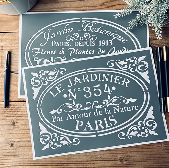 DIMENSIONS: Ensemble de 2 pochoirs adhésifs mesurant chacun 30 x 20 cm, parfaits pour créer des motifs thématiques.