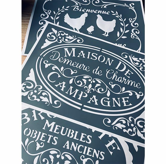 DIMENSIONS: Ensemble de 3 pochoirs adhésifs mesurant chacun 30 x 20 cm, parfaits pour créer des motifs thématiques de style campagne et ancien.