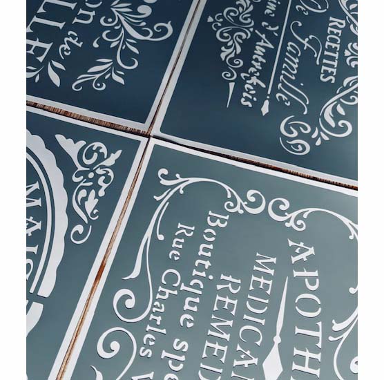 Lot de 4 Pochoirs Adhésifs en PVC, Style Rétro, Ancien, Thème Vintage, 30 x 20 cm.