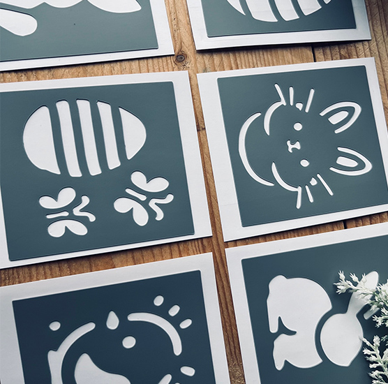 DIMENSIONS: 9 pochoirs de 8 x 8 cm, format idéal pour vos projets de décoration de Pâques.