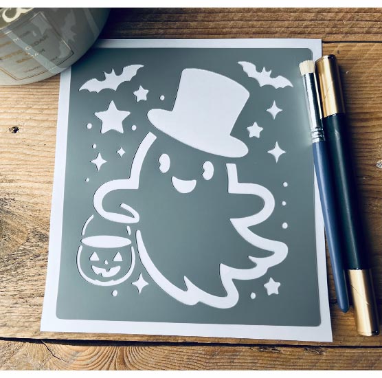 Pochoir Adhésif 15 x 15 cm Petit Fantôme & Citrouille Halloween