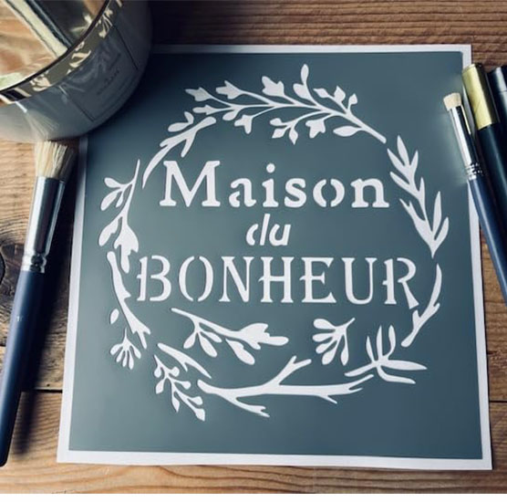 | Ce pochoir adhésif de fabrication artisanale française est lavable et repositionnable, Auto adhésif. Fabriqué dans une matière PVC souple, résistante, il pourra être utilisé à de nombreuses reprises.