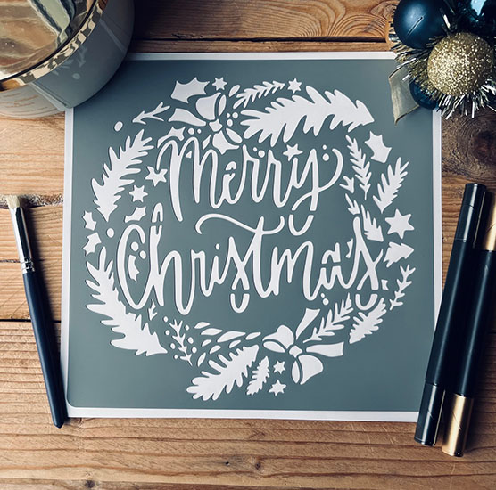 Pochoir Adhésif 20 x 20 cm Couronne Stylisée Merry Christmas