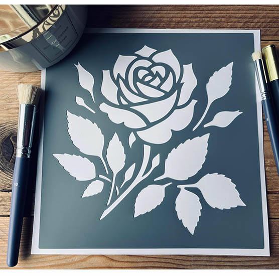 Pochoir Adhésif 20 x 20 cm Grande Rose & Feuilles