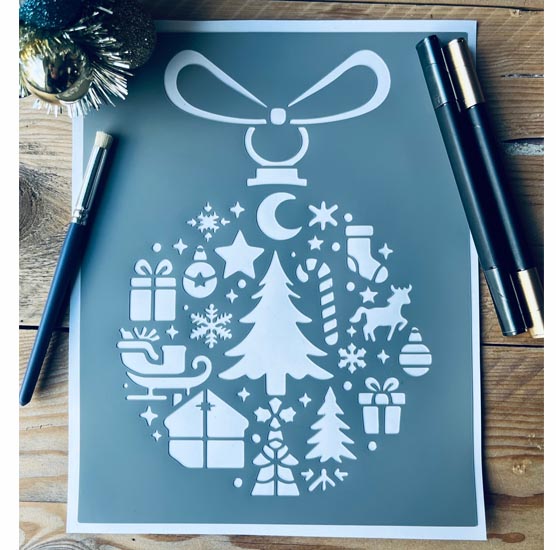 Pochoir Adhésif 22 x 18 cm Grande Boule de Noël & Décorations