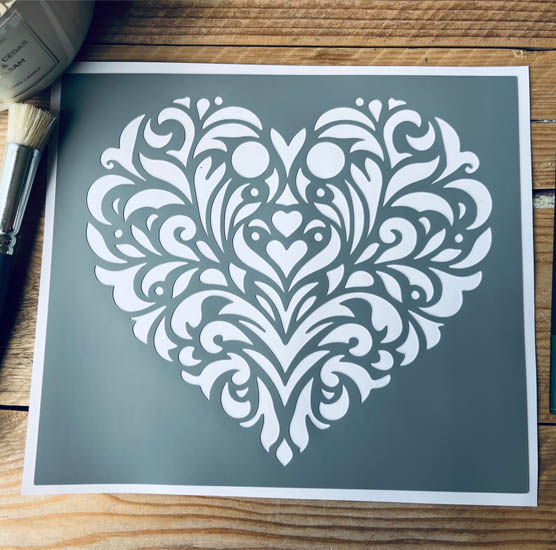 Pochoir Adhésif 22 x 20 cm Grand Cœur Stylisé et Arabesques