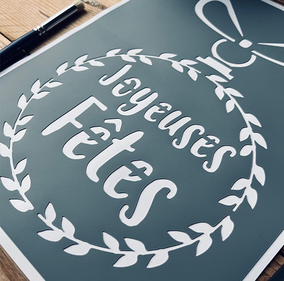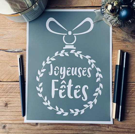 Pochoir Adhésif 25 x 20 cm Boule Noel Joyeuses Fêtes