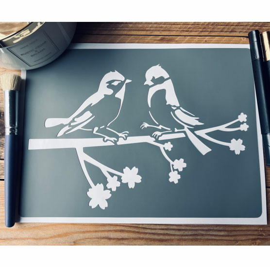 Pochoir Adhésif 25 x 20 cm Branche Cerisier & Oiseaux