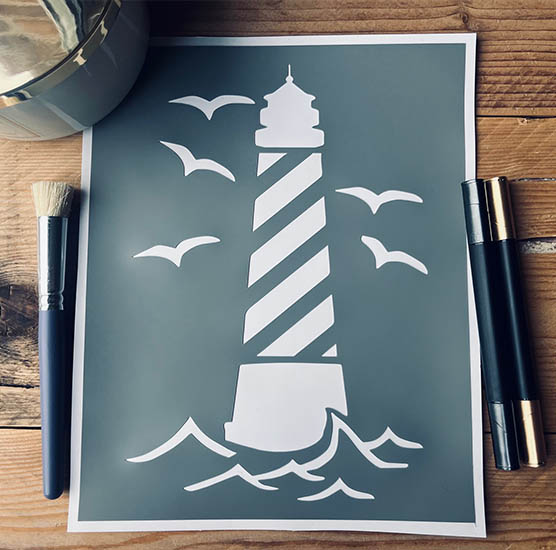 Pochoir Adhésif 25 x 20 cm Phare, Vagues & Mouettes