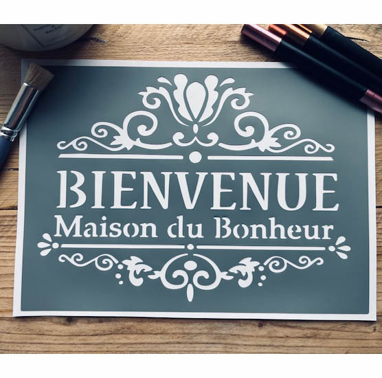 Pochoir Adhésif 30 x 20 cm Affiche Bienvenue Maison Bonheur