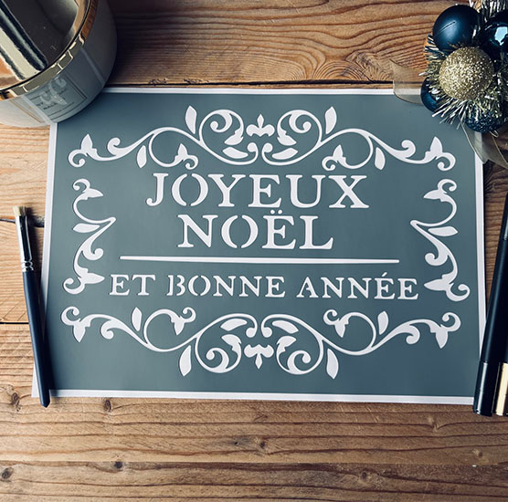 Pochoir Adhésif 30 x 20 cm Affiche Joyeux Noël et Bonne Année