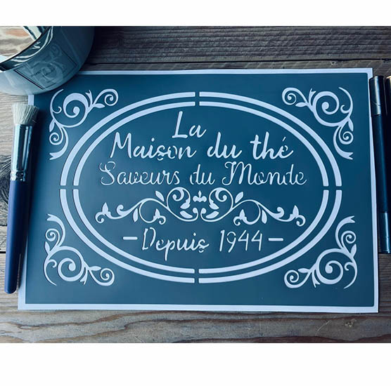 Ce pochoir adhésif de fabrication artisanale française est lavable et repositionnable, Auto adhésif.