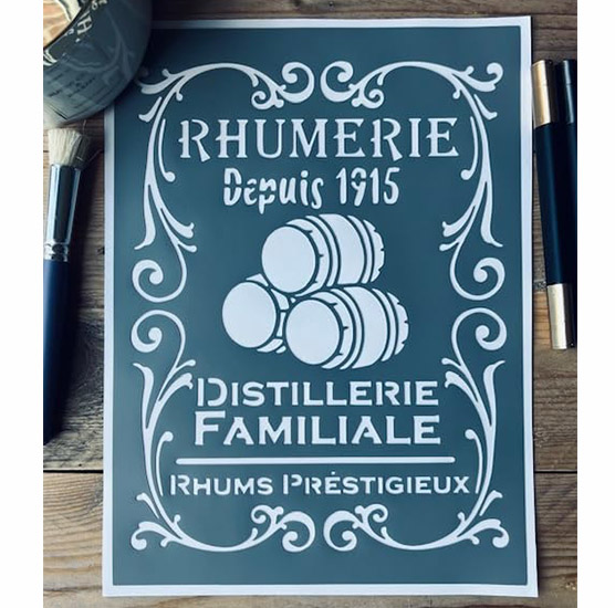 Pochoir Adhésif 30 x 20 cm Médaillon Ancien Rhumerie Familiale