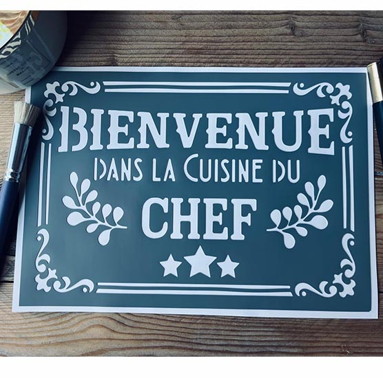 Pochoir Adhésif 30 x 20 cm Médaillon Bienvenue dans la Cuisine du Chef