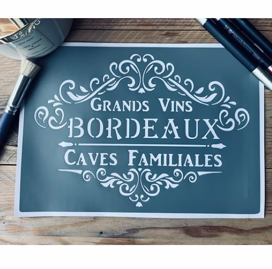 Pochoir Adhésif 30 x 20 cm Médaillon Vins de Bordeaux, Caves Familiales