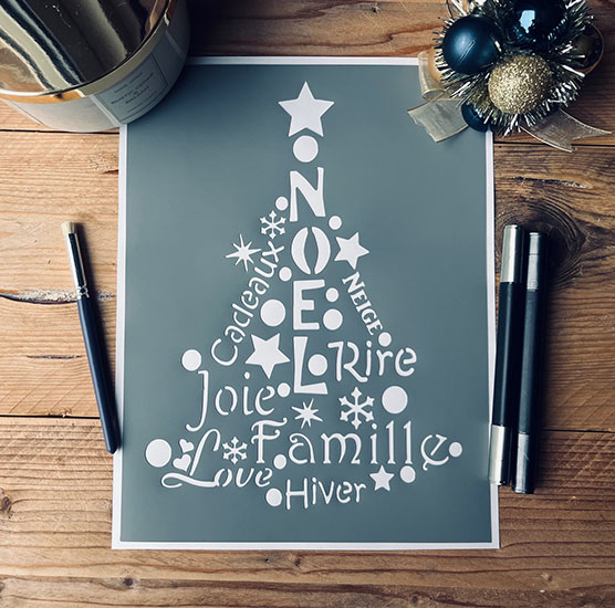 Pochoir Adhésif 30 x 20 cm Sapin de Noël, Etoile & Lettrages