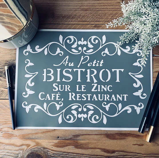 Pochoir Adhésif en PVC, Affiche "Au Petit Bistrot", 30 x 20 cm. Style Vintage