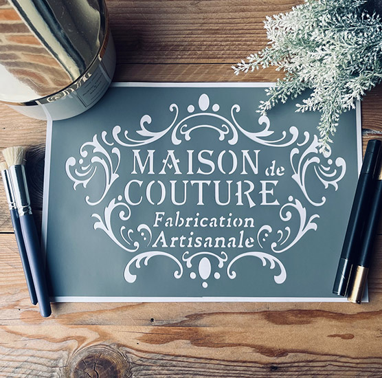 Pochoir Adhésif en PVC, Médaillon "Maison de Couture", 30 x 20 cm.