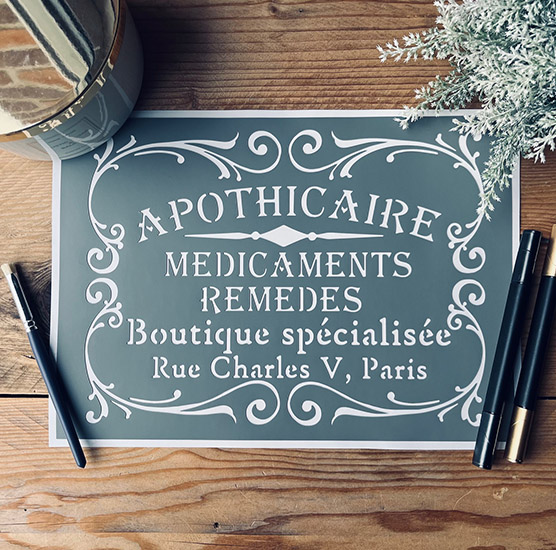 Pochoir Adhésif Style Vintage en PVC, Motif Affiche Apothicaire, 30 x 20 cm